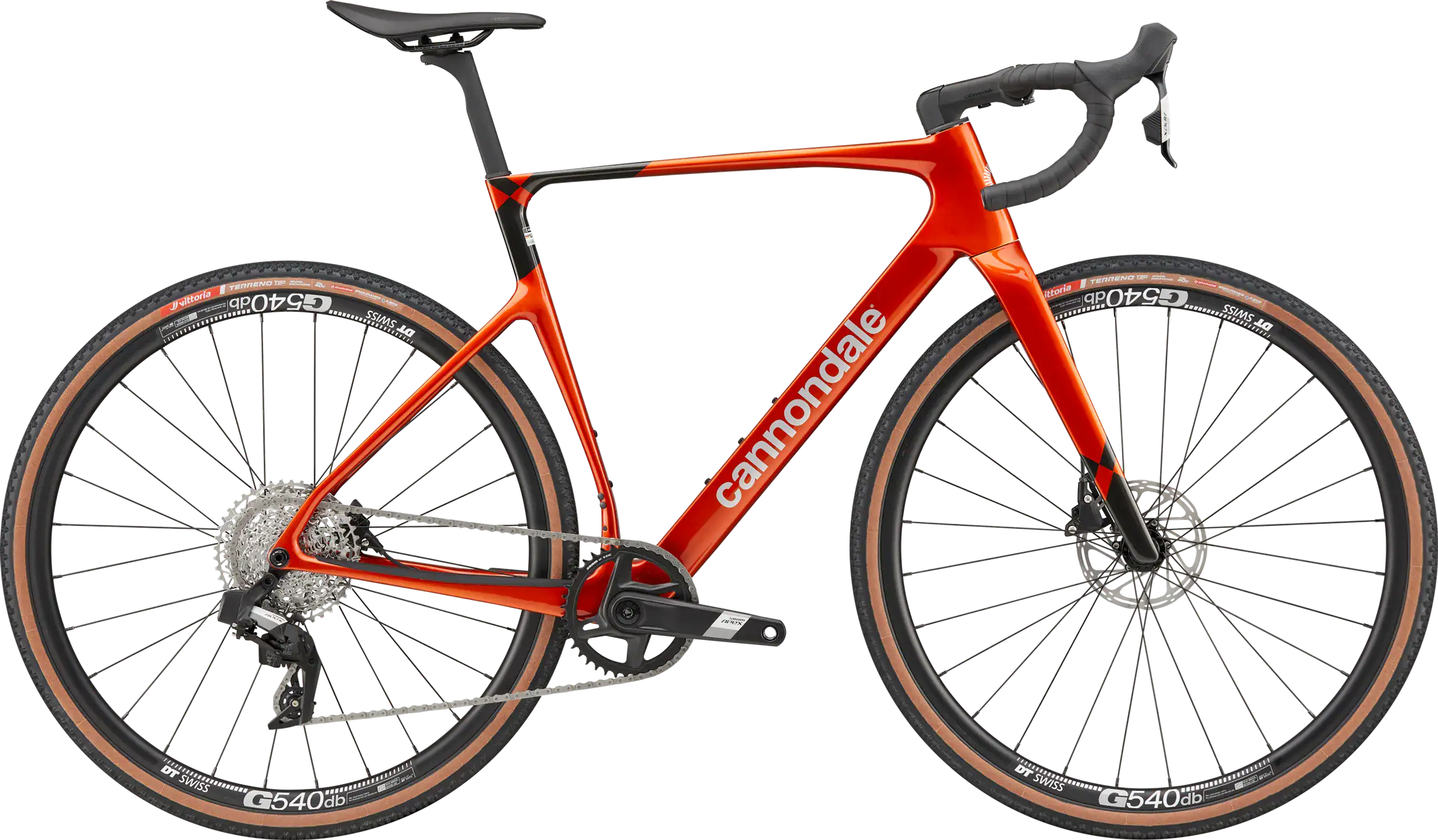 • Light and durable DT Swiss G540 gravel rims, wrapped in 40c Vittoria Terreno T50 tubeless ready tires